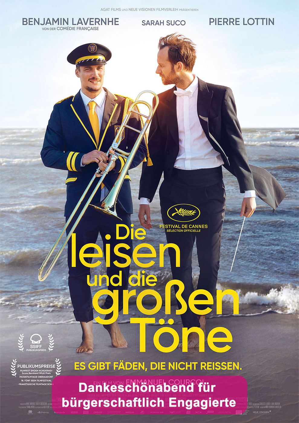 Dankeschönabend Ehrenamt Die leisen und die großen Töne Do., 07. August 2025 Komödie, Drama 19:00 103 Min. 15’ AUSVERKAUFT!